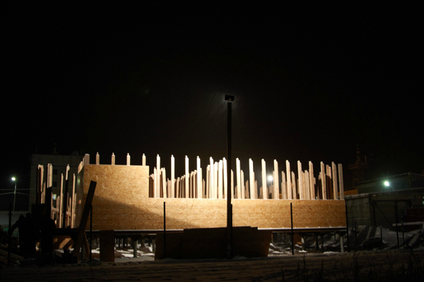 В-третьих, неожиданный снегопад замедлит работу, так как ее исполнителям периодически придется очищать сруб от нападавшего снега.